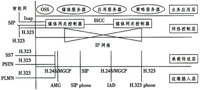 (3)软交换/IP多媒体子系统(softswitch/IMS):作为应用服务器通过SIP支持NGN业务;