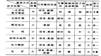 以上几种通信方式各具特点(见表1),应根据具体情况选用,也可以选用几种方式的组合。
