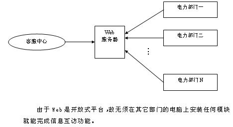 建议在系统局域网内设一Web服务器,作为客服中心与电力各部门、各计算机系统间衍接的桥梁。