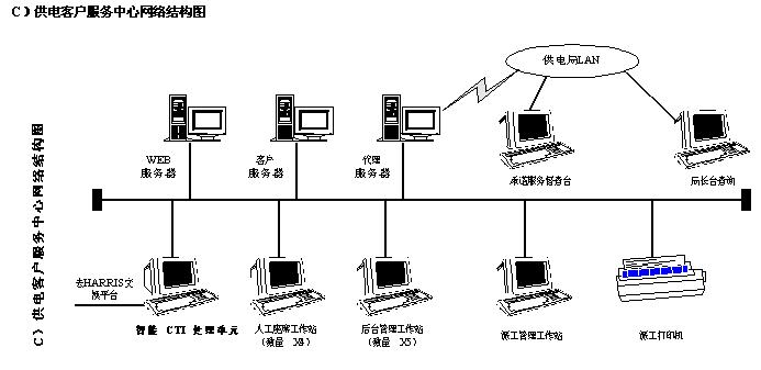 电力客户服务中心采用了美国哈里斯公司提供的国际最先进的通讯、计算机集成的科技成果——一套完整的、灵活先进的呼叫中心解决方案:HCP (Harris CallCenter Platform)。参照了发达国家先进的管理经验,结合众多用户客户中心实际检验的优秀的设计开发实践,并根据我国国情和供电客户服务的具体实际需求,为电力部门提供面向社会的优质、灵活、完善、统一的服务窗口。