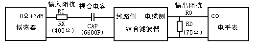 测量“工作衰减”需设定:线路侧阻抗RX(如400Ω),电缆侧阻抗RD(如75Ω)和结合滤波器耦合电容CAP (如6600P,若内置了耦合电容应选0P),“线路侧工作衰减” 如图(3),“电缆侧工作衰减”如图(4)。