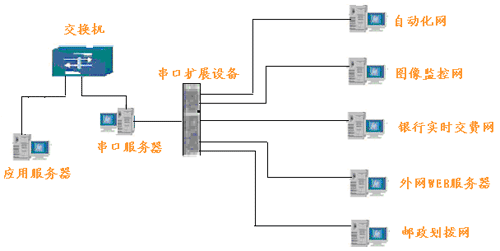 自动化系统、图像监控系统、企业外网的WEB服务器、银行系统、邮政系统等网络之间进行业务联系,通过计算机串口连接,来传输业务数据,建立的网络连接。
