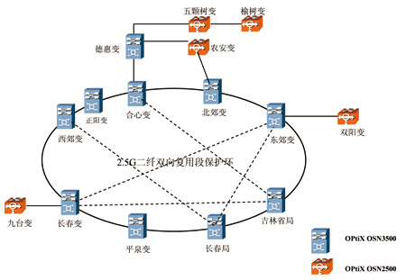 如图2所示,除了双阳变、九台、五棵树变、榆树变外,所有的站均开通ASON功能,生成智能光网络。其中将农安变至德惠变、农安变至北郊变的光方向升级为2.5Gbit/s;网络拓扑图中虚线部分为生成ASON功能所新增2.5Gbit/s光方向。