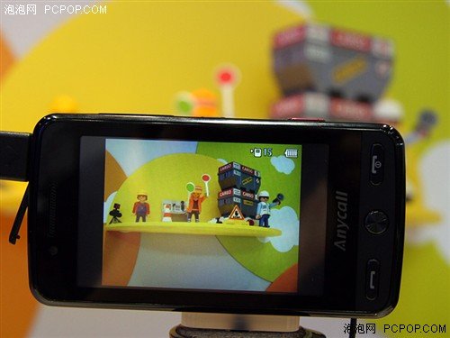 三星M8800c配备的一块超大的3.2英寸1600万色WQVGA(240×400像素)分辨率的液晶触摸屏幕,是这款手机最为醒目的特征之一。虽然屏幕可呈现豪华质感的镜面效果,但是仅有240×400像素的分辨率始终是这款产品难掩的诟病。