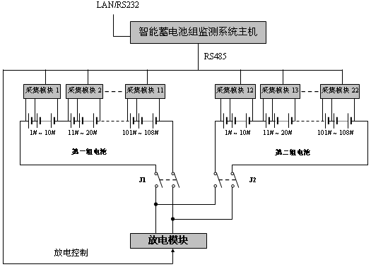 放电模块接到来自放电控制模块的放电指令时,放电负载接通,电池通过负载放电,同时采集模块将快速采集每节电池电压的每一变化量,在监控主机中显示每节电池的特性曲线,实时显示每节电池电压的电压值和容量。