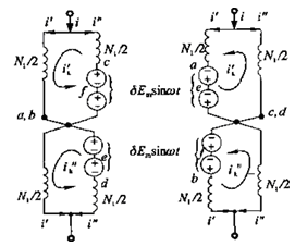 K2;不同铁芯的上下两个绕组交叉连接后,并联至电网