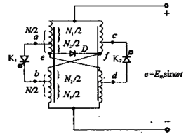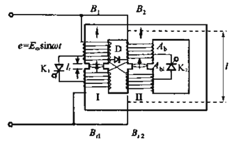 3(左)所示;若电源电压处于负半周,当K2导通时,同样在回路中产生直流控制电流,且所产生的控制电流的方向与