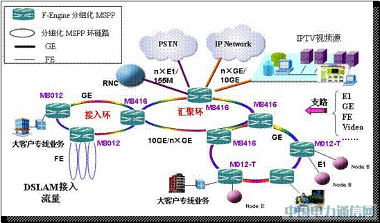 随着业务的不断增长,后期还可通过下放千兆环网、上拉万兆环网等方式将多业务分组承载网络进一步向地市、县和城域延伸,最终形成提供覆盖完善的多业务分组化大客户承载网。