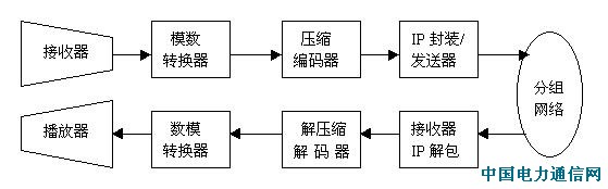 播放驱动器将缓冲器中的语音样点(480个)取出送入声卡,通过扬声器按预定的频率(例如8kHz)播出。简而言之,语音信号在IP网络上的传送要经过从模拟信号到数字信号的转换、数字语音封装成IP分组、IP分组通过网络的传送、IP分组的解包和数字语音还原到模拟信号等过
