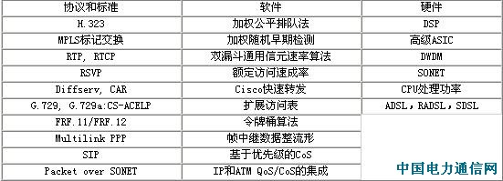 协议和标准 软件 硬件 H.323 加权公平排队法 DSP MPLS标记交换 加权随机早期检测 高级ASIC RTP, RTCP 双漏斗通用信元速率算法 DWDM RSVP 额定访问速成率 SONET Diffserv, CAR Cisco快速转发 CPU处理功率 G.729, G.729a:CS-ACELP 扩展访问表 ADSL,RADSL,SDSL FRF.11/FRF.12 令牌桶算法 Multilink PPP 帧中继数据整流形 SIP 基于优先级的CoS Packet over SONET IP和ATM QoS/CoS的集成