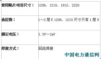 金属端子电容器产品列表如下所示。