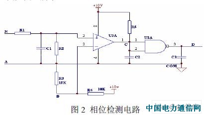 本系统所设计的相位检测电路,即是在正弦交流电固定的相位点,使相位检测电路产 生具有一定占空比的方波信号,由此方波给P89LPC932 提供50Hz 的外部中断信号,相位 检测电路硬件原理图如图2 所示: