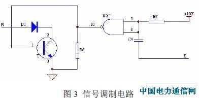 信号调制电路的功能主要是在 P89LPC932 接受到外部中断输入信号后,完成微控制器 所发送数据在低压电力线上的调制工作,从而实现数据在电力线上的传送。信号调制电路 硬件原理图如图3 所示。