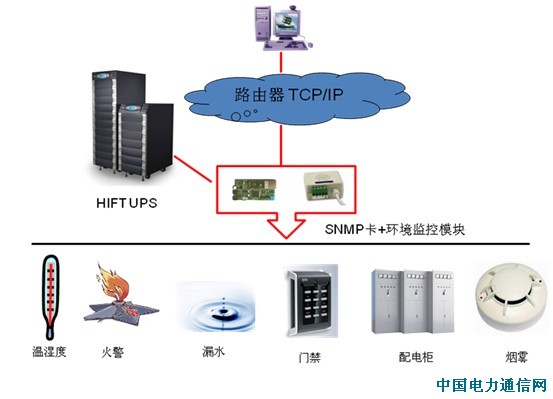sp; HIFT(海福)UPS,加上SNMP卡和环境监测模块,即可对机房的动力环境,包括温度、湿度、火、烟雾、漏水、以及门禁,进行全面的监控和管理。