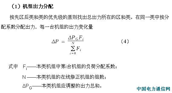 6〉在线修正机组按一定的原则分为1、2、3级(具体划分由值长人工输入)。修正发电计划时1级的权限最高(先加后减)。在线修正机组在它的出力上下限之间可分为3个区,升负荷顺序为从1区到3区。即先在第1区内按类分配负荷,若1区不能满足负荷的要求,再在2区进行,以此类推。减负荷从3区到1区。