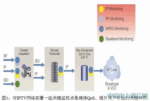 泰克凭借在数字电视网络监测方案方面的一贯优势,提供全面支持三网融合的监测和检测设备,包括:网络接入点(如内容采集、内容传输和内容存取)的前端监视;基于IP网络的设备部件(如编码器和IP交换机)的现场安装测试;网络基础设施(如编码器/机顶盒)的选择和质量评测等。
