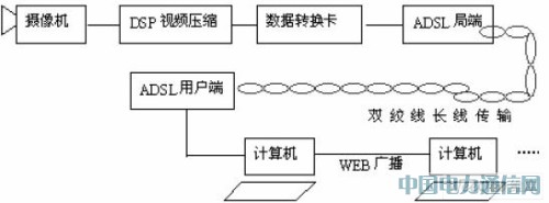 基于法国Alcatel公司“DynaMite”解决方案,使用MTK系列ADSL套片和相应的参考方案改造局端。用DSP芯片或MPC 8XX处理器系列搭构一个数据转换卡,去掉原来的DSLAM机架。现在已将这种改造后的 ADSL技术应用于视频监控系统中。