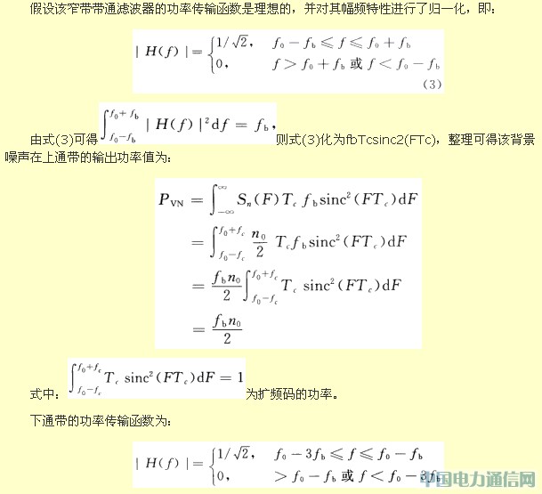 根据上述分析,针对其中影响比较大的两类噪声进行分析:背景噪声与频域窄带脉冲噪声。上带通输出的信号功率包括有用信号、部分背景噪声、部分频域窄带脉冲噪声;下通带输出的信号功率包括码自噪声、部分背景噪声和部分频域窄带脉冲噪声。