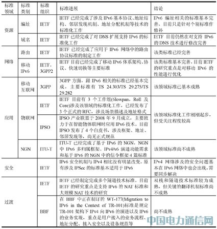 IPv6国际标准具体进展参见表1。