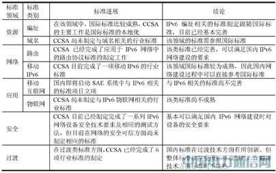 CCSA目前完成了一项移动IPv6的行业标准。该领域国际标准较为成熟,因此国内网络建设过程中可以直接参考国际标准。