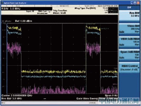 对于GSM波形,在进行连续测量时,设计人员可以利用分析仪的相关触发特性来改变设备的输入信号电平,而不必重新设置频谱分析仪的触发电平。