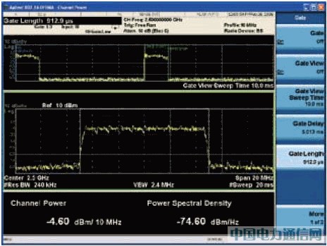 图4 图中的信道功率测量使用WiMAX下行链路猝发脉冲进行选通。该猝发脉冲由1个前导码和8个符码组成