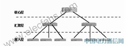 这种方式一般应用于比较复杂的网络结构中,按照功能可划分为:接入层、汇聚层、核心层。其结构示意图如下所示。