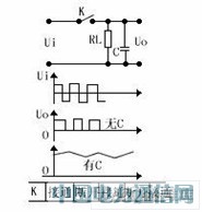 下图是解调器的原理电路,RL为负载,C为滤波电容,其作用是使输出直流电压平滑,解调开关K与输入交流信号,Ui具有相同的频率。当Ui为正时,开关接通,输出等于输入电压UO,经电容C的平滑作用后,应可得到平滑的直流电压UO。相反,如果Ui为负时,开关接通,Ui为正时,开关断开,则输出端得到负的脉动直流电压UO。