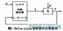 Delta-sigma调制器的仿真模型可以用图1来表示。该系统是一个双端输入、单端输出的线性系统,系统的一个输入为外部输入信号U,另一个输入为量化器的反馈V,输出则是量化器的输入Y。