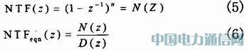 高阶Delta-sigma的NTF具有一般形式(5)。从表达式可以看出,NTF的n个零点都集中直流频率处。但是,文献指出,如果将NTF的零点均匀地分布在信号基带中,而不是全都集中在直流频率处,将对量化噪声有更好的整形效果。Delta-sigma调制器的不稳定状态主要与调制器N-TF的带外增益有关,为了限制NTF的带外增益,将式(5)所示的NTF的一般表达式改写成式(6)。