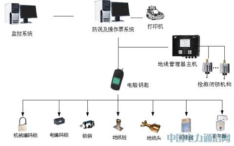当有操作任务时,由防误操作系统模拟开票,打印操作票,电子票传票到电脑钥匙;同时,五防系统主机将解锁命令发送给地线管理器主机;地线管理器主机接收到五防主机的解锁命令后,解锁对应闭锁机构,操作人员持已接票电脑钥匙及已解锁的临时地线,到现场操作。