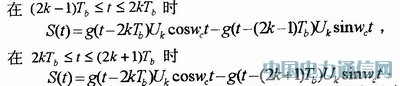 设输入的数据为{Uk},则OQPSK已调波可以表示成: