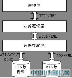 整个SIS应用系统采用多层结构设计,由数据存取层、业务逻辑层、表现层构成,各层之间利用Internet标准协议进行交互,如图2所示。