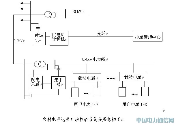 在自动抄表系统中一般采用将多用户的数据集中后远传的方式,以避免通信资源的浪费和成本的增加。但农村居民居住分散,各电力表计到集中器之间距离较远,底层通信难于采用双绞线等有线通信方式。另一方面,农村供电网分支少,适宜于电力线载波通信。所以电力线载波通信在农村电网的自动抄表系统中具有一定优势。