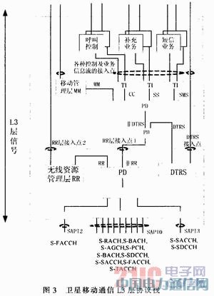 在L3层的协议栈里,信令最终以帧的形式在物理信道上传输,根据不同信令使用的频段和时隙不同,将物理信道划分为多个逻辑信道。与GSM系统的逻辑信道不同,卫星移动通信信道主要分为2类:用于传输用户编码语音和数据的卫星业务信道(S-TCH)以及卫星控制信道(S-CCH)。卫星业务信道(S-TCH)包括全码率业务信道(S-TCH/F),信息速率为24 Kb/s;半码率业务信道(S-TCH/H),信息速牢勾12 Kb/s;1/4码率控制信道(S-TCH/Q),信息速率6 Kb/s;1/8码率控制信道,信息速率为3 Kb/s。可根据具体的语音和数据量的大小来分配所用信道。