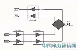 针对这种现状,本文介绍采用LMH 6643满摆幅输出芯片、LMH6672线路驱动器及LMH6622低噪声运算放大器组合实现的方案,该方案具有能充分发挥ADSL基带数字信号处理器性能的优点。结构框图参见图1所示。