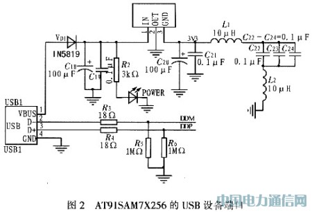 2.2 AT91SAM7X256的USB设备端口设计