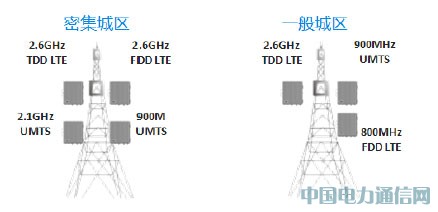 在三大城市之外的南部地区,采用FDD 800MHz UMTS 900MHz迚行广域覆盖,部分叠加TDD 2.6GHz站点迚行扩容,满足广域覆盖和容量双重要求。