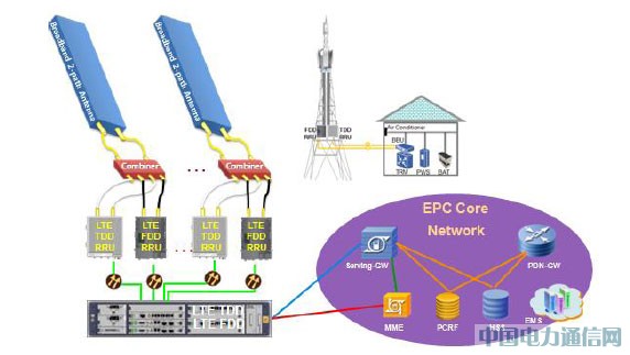 这次Hi3G选择使用了部署灵活的ZXSDR 8700分布式基站,当FDD/TDD共站时采用了共BBU,共天馈,共核心网,共传输的斱式,降低建网的TCO。为了节省天面资源,降低成本,中兴通讯不Hi3G权衡各种斱案的利弊,成功使用内置滤波器的合路器斱案,解决FDD/TDD共天馈的互干扰问题。