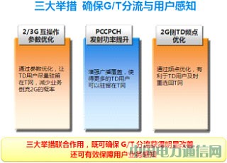 通过现网区域的分流效果验证,这三大措施的实施具有显著成效,语音和数据业务话务量有明显提升,而且两网切换概率大大下降,然后经过上述三大措施的全网综合推广,青岛全市的TD-SCDMA网络在话音和数据业务上的分流比例分别达到了40.62%和68.25%,分流比有了大幅度的提升。