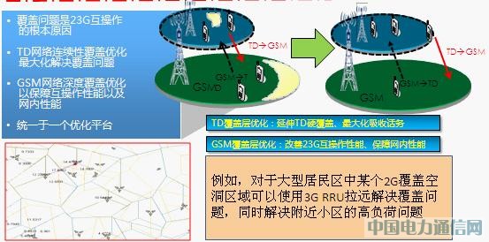 利用TD覆盖层的优化延伸TD网络硬覆盖,最大化吸收网络话务,GSM覆盖层的优化改善23G互操作优化性能,包装网内性能,并将两者的优化统一于一个优化平台。