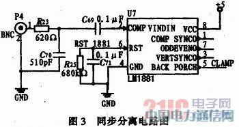 分离电路采用美国国家半导体器件公司出品的集成LM1881来实现,电路如图3所示。