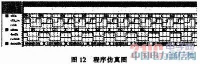 程序仿真图如图12所示,adin是编码之前的八位数据,设为逐次加一的计数数据,为了方便比较,图中用十进制表示。编码后的十位数据为data10b,adout是解码后的数据。可以看到虽有延迟,解码后数据仍为计数数据。因此程序可以准确地实现解码功能。