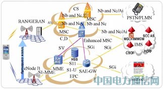 图2中,包括EPC,CS以及IMS三大模块,为了实现不中断的语音呼叫,需要三个模块协同工作。其中,电路域的MSC需要升级为增强的MSC,以便支持从MME发来的切换过程,支持IMS到CS的切换并关联CS切换和从IMS域到CS域的域转移;EPC中的MME需要能从PS承载中分离出语音和非语音部分,对语音承载部分发起SRVCC切换并协调PS切换和SRVCC切换;IMS中的HSS需要在UE附着过程中把SRVCC VDN(VCC域转移号码)插入MME。