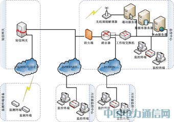 操作管理人员通过互联网连接到网管服务器来对终端进行远程控制,发出的任务指令通过无线网传输到设备,终端设备接收指令后采集参数再返回给网管,供管理人员进行查询和分析。