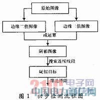 初步检测采用的特征是车辆阴影,即一块位于目标车辆底部、灰度值明显比附近路面区域低的区域。在一般环境条件下,大部分车辆都具有这一显著特征。