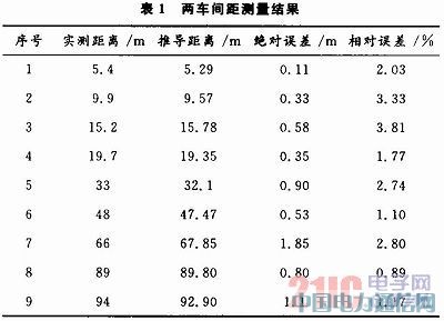 为了验证单目视觉测距准确性,在市内道路上采集了前车与本车距离从5~100 m的一组图像。对采集的图像进行处理后,根据公式推导出本车与前车距离以及实际距离见表1。表中数据显示,单目视觉测距的相对误差都在5%以内,可以满足实际工作中测距告警的需要。