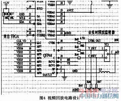 视频回放是方便飞行员能够实时监控训练和试验的情况。系统采用Philips公司的SAA7121视频编码器,将FPGA处理后的视频数据转换为PAL制的综合视频,送给飞行员面前的监视器进行显示。如图4所示。