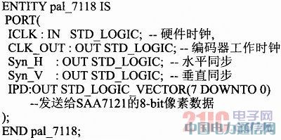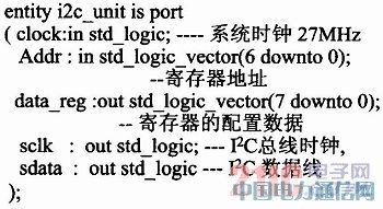 为支持SAA7121编码器,视频回放逻辑包括为初始化而提供的I2C接口和PAL制的视频编码。SAA7121的寄存器是8-bit的,则其I2C接口可以描述如下: