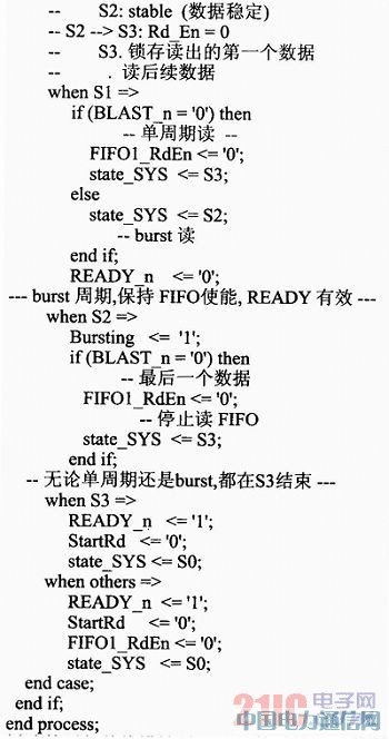 (1)当写入数据达到FIFO容量的1/4时,即写够4k×32bit时产生中断。这个条件可根据FIFO的可编程空判断,亦即PRG1 Empty=‘0’时产生中断。